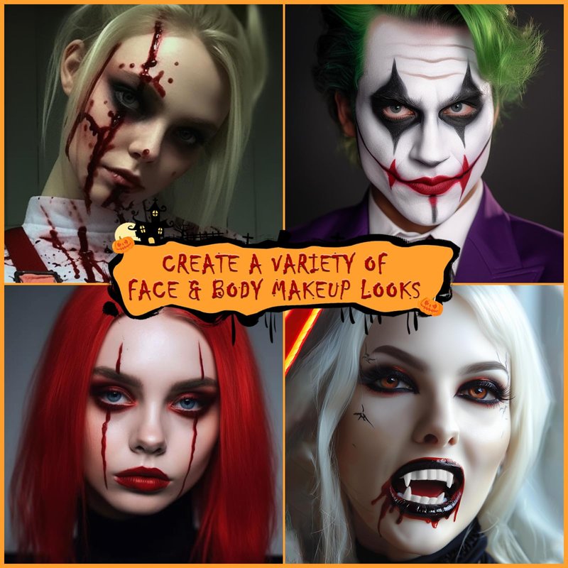 - 【Multiple Purpose】From Halloween, Fun Themed Party and Cosplay events to Theatrical SFX makeup or just for special stage effects, this set offers limitless opportunities for artistic expression. Suitable to create Looks like Vampire, Zombie, Clown, Joker, Skeleton, Corpse Bride, Day of the death and Ghostly makeup.