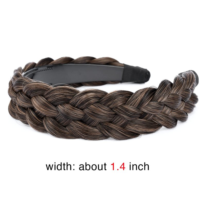 BOBIYA Wide Chunky Plaited Braided Headband Hair Band Synthetic Braid Hairpieces with Teeth Piano Two Tone Colors Accessories (5-Carbon Brown)
