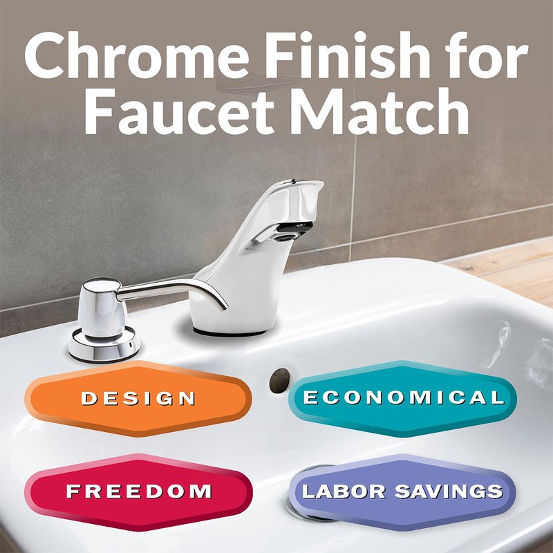 - Sleek and Secure - Our dispenser's chrome finish seamlessly matches with chrome faucets, enhancing the aesthetics of your space. Featuring a 360-degree rotatable spout and a vandal-resistant design for added security and convenience.