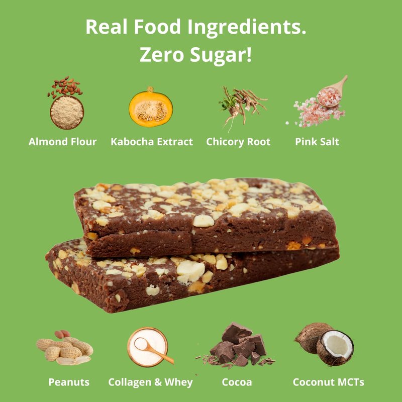 Our Peanut Butter Chocolate BochaBars contain high quality ingredients making each bite packed with 21 grams of protein from whey and collagen peptides from grass-fed cows and 17 grams of fat from coconut MCT powder, organic peanut butter, and organic cacao butter. Plus, featuring MCT powder with prebiotic acacia fiber for physical performance. These protein bars will not leave a bitter aftertaste and contains 3g net carbs! Not only will you get a similar amount of protein you would get from most other bars, with a BochaBar you will also get additional zero calorie sweetness from BochaSweet, a revolutionary extract from the kabocha pumpkin.
