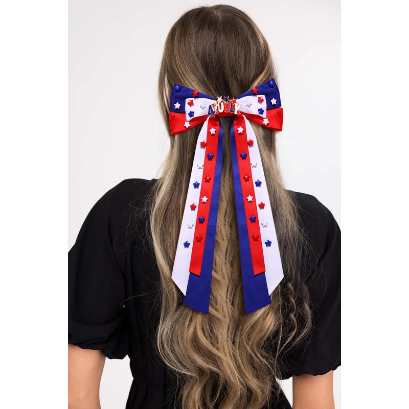 - Patriotic Hair Bows:Ready to shine brighter than the fireworks this 4th of July with our beautiful American flag hair bow clips for women!Features the red white and blue silky satin hair clips in classic bowknot design with stars charms and sparkling rhinestone crystals embellished,fully of USA patriotic spirit.4th of July hair bows perfect for any holiday festivity....From the BBQ to the Fireworks this red white blue hair bows will surely turn heads!!!