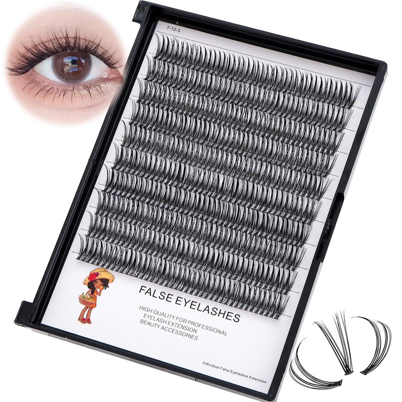 Bodermincer 400pcs D Curl Lash Clusters 8-10-12-14mm/10-12-14-16mm MIX Fish Tail Lash Cluster Premade Volume Lash Fans Volume Lashes Knotted (Black 12mm)