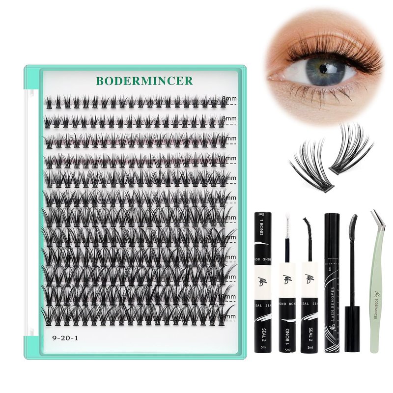 - BODERMINCER lash kit Includes: Our lashes extension kit provides120pcs Cluster Lashes , 1 Lash Bond and Seal, 1 Lash Tweezers,1 lash clusters remover; Achieving the natural extension look has never been easier with our DIY eyelash extension kit that offers all you need to work with at home; Save time and budget to go to lash extension salon.