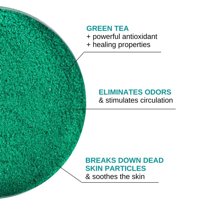 Soak in all the benefits of green tea. Rich in potent antioxidants like polyphenols and anti-aging healing properties, this formula breaks down dead skin particles and eliminates odors while stimulating blood circulation. Soothe, heal, and comfort tired, irritated feet.