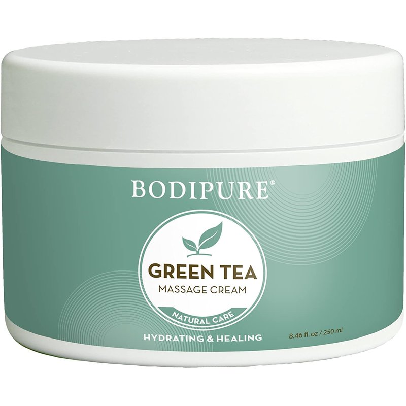 BODIPURE Green Tea Massage Cream - Rich in Antioxidants to Rejuvenate Dry Skin - Skin Moisturizing, and Relaxing Sore Muscles, 8.46 Ounce