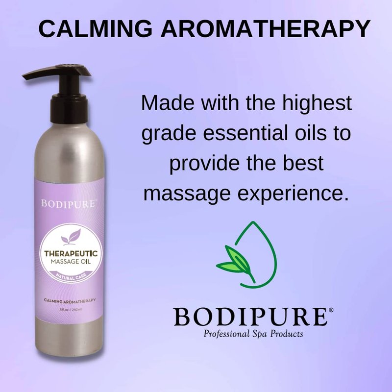 BODIPURE Lavender Aromatherapy Massage Oil for Body - Perfect for Professional Massage Therapy - Rich in Vitamins and Minerals - Skin Hydrating, Massaging, Relaxing Muscles, and Joints, 8 fl. oz.