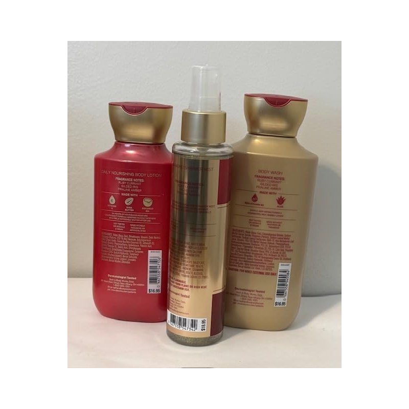 - Fragrance notes include ruby currant, gilded iris, and praline amber.