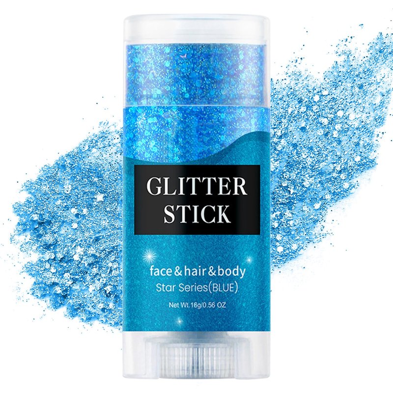 Body Glitter Stick, Singer Gold Concerts Glitter Gel, Pink Holographic Mermaid Sequins Chunky Glitter, Music Festival Rave Glitter Makeup for Body, Face, Hair and Lip, 0.56oz (Blue)