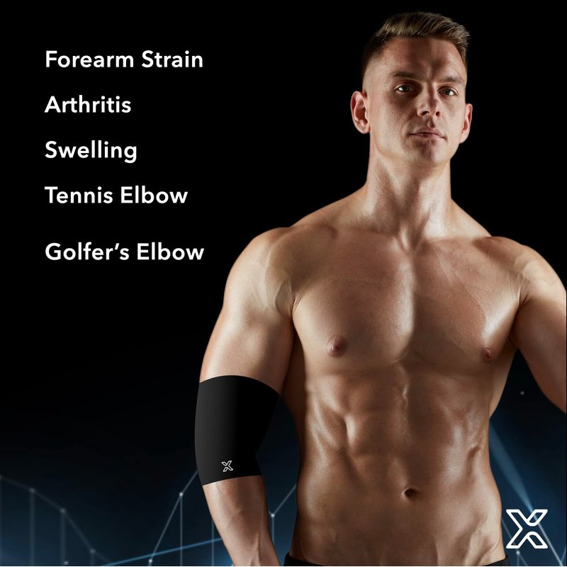 The Body Helix compression sleeves for tennis elbow and golfers elbow provide uniform, comfortable support and are ideal for tendonitis, forearm muscle strains, and generalized elbow pain from issues like arthritis or over-use. Our elbow compression sleeve for tennis elbow provides support and compression over your entire elbow joint and for the surrounding muscles and tendons above and below your elbow joint, making it an ideal elbow compression sleeve for women and men. Our compression elbow sleeves for women and men are so comfortable you will forget that you have the elbow sleeve for golf on and so effective that you will not want to compete without our tennis elbow brace for women and men. Medical grade compression makes our bilateral elbow brace more useful than an ordinary tennis or golfers elbow compression sleeve. The incredible stretch and elasticity of the material means there is no loss of range of motion, which is important for a tennis elbow sleeve men and women wear that needs to provide full range of motion in order for them to perform at their best. Because the material locks to your skin when you start sweating, our golf elbow brace will not slip, eliminating the need for bulky straps. Our elbow compression sleeves for men and women are ideal for the most common elbow issue, tendonitis, in the form of tennis elbow (pain on the outside of the elbow) and golfers elbow (pain on the inside of the elbow). It supports your tendons and keeps them warm, making it the best tennis elbow sleeve for sports and leisure. The Full Elbow Helix is also an elbow compression sleeve women and men prefer for injuries to the upper part of their forearm and to the lower portion of their upper arm, diminishing or eliminating pain from inflammation and overuse injuries. Many athletes who struggle with chronic elbow pain continue wearing the Full Elbow Helix even after they have recovered. Hsa fsa approved products only in our entire catalog of products.