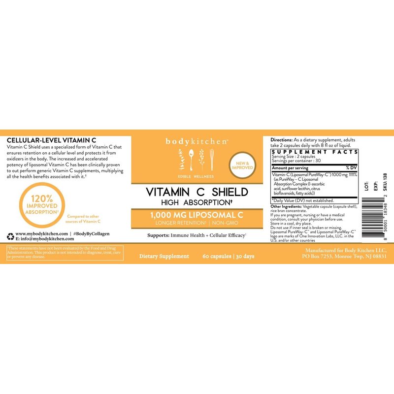 - Body Kitchen’s Vitamin C Shield is now improved with Liposomal C which protects you from day-to-day exposure to unfavorable factors that can harm the body and weaken the immune system