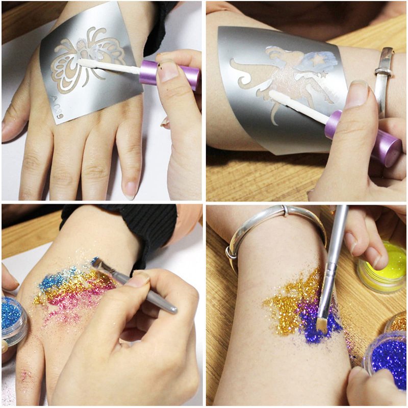 - Good Compatibility: Great for glitter, tattoo stencils, and for bonding body jewelry or body art to the skin. This product is just glue, without template and glitter powder.