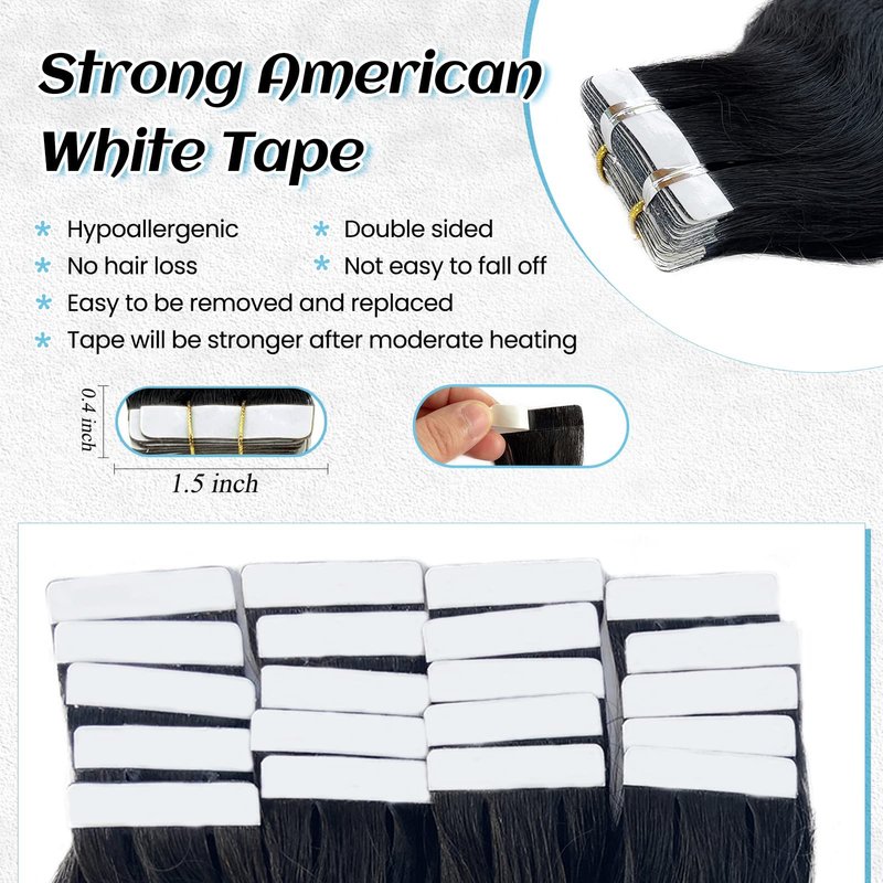- 【Reusable & Invisible Tape ins Hair Extensions】Tape in tracks hair extensions use strong viscosity double sided tape, hypoallergenic, invisible, durable, no hair loss, not easy to fall. The tape can last 4-6 weeks, and can be replaced as needed, every pack with a set of tapes for replacement. Tape will be stronger after moderate heating. Blend well with your own hair, you can change hair length or thickness according different occasions.