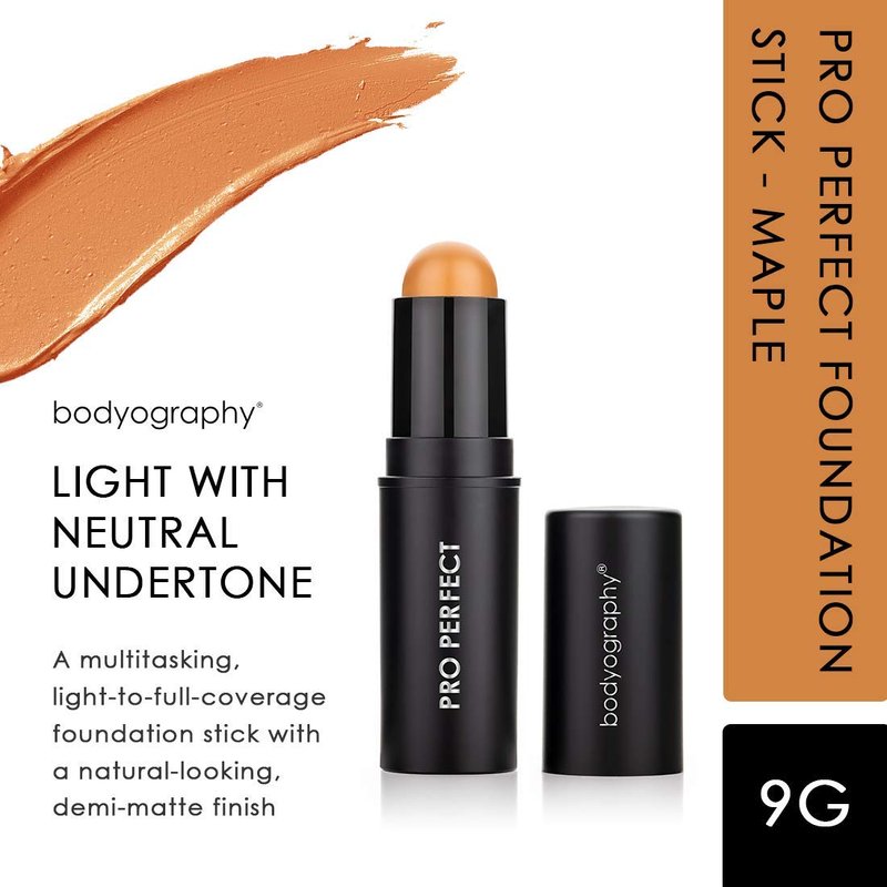 Bodyography Pro Perfect Foundation Stick - Demi-Matte Finish with A Natural Look - Enhancer for Concealing, Highlighting, and Contouring - Vitamin C & E (Maple)