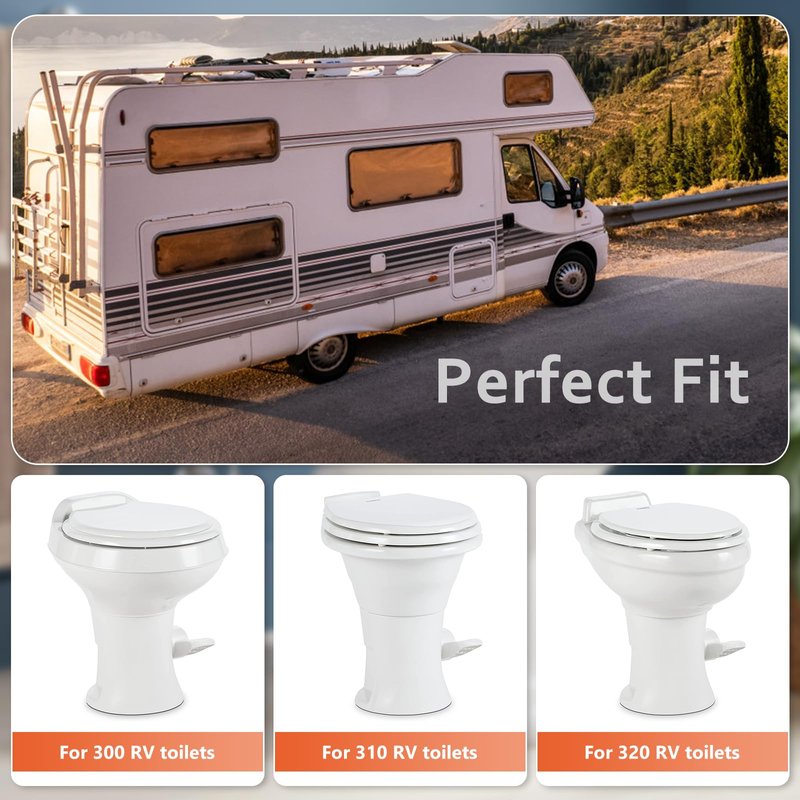RV Toilet Seal Kit Easily Solves RV Toilet Seal Issues. Specifications: 1RV Toilet Flange (385345892), 0.57 lbs 1RV Toilet Seal (385311652), 0.1 lbs 1RV Toilet Flush Seal (385311658), 0.04 lbs 1 set of bolt accessories, 0.1 lbs The RV toilet seal kit is compatible with RV 300/310/320 RV toilets, designed to replace RV 310 toilet seals, easily solve RV toilet seal problems. With RV 310 toilet seal, you can effectively solve the toilet leakage problem while enjoying a comfortable journey, ensuring that your RV environment is always clean and fresh. Our RV toilet seal kit is specially designed for RV drivers/campers/RV travelers/outdoor travel/RV maintenance personnel, etc., easily solve the RV 310 toilet seal problem.