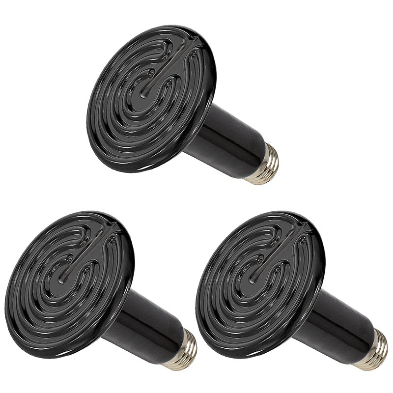 BOEESPAT 150W 3 Pack Ceramic Heat Emitter Bulb, Reptile Heat Lamp Brooder Coop Pet No Light No Harm for Pets Amphibians Hamsters Snakes Birds Poultry Chicken Coop Habitats (Black)