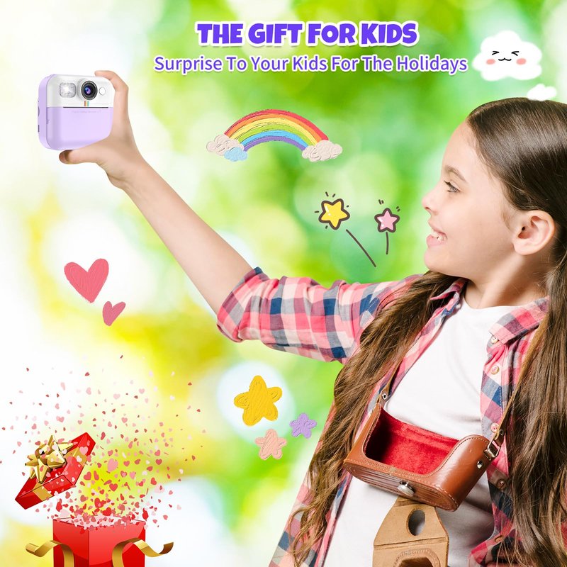 - 【USE YOUR IMAGINATION TO CREATE ARTWORK】Kids camera for girls comes with a variety of creative features and settings. Kids can use the included color pens to decorate their photos, add funny frames, and unleash their imagination and creativity. You can also explore different scene filters and printing density options to enhance their photos even further. 4 puzzle games for kids to relax in casual time.