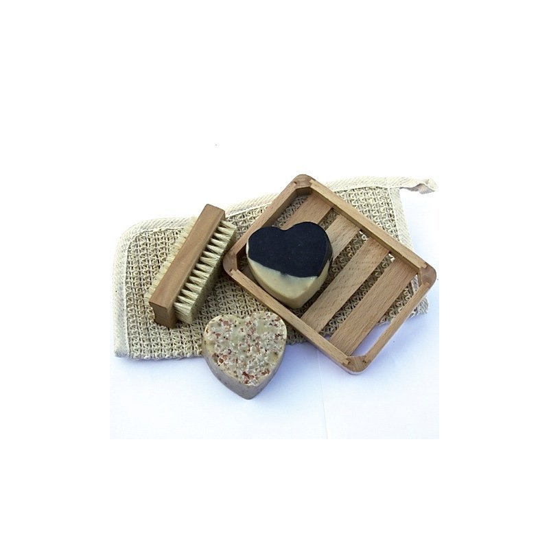 Bogue Goat Milk Soap- Mothers Day Giftset Big Hearts of Goat Milk Soaps. Chefs Blend Exfoliating & Acivated Charcoal & Kaolin Clay Detox and Moisturizing. Sisal Cloth, Nail Scrubber and Dish