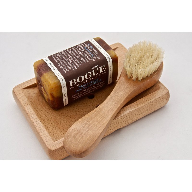Bogue Goat Milk Soap - No.20 Moisturizing Palo Santo Gift Set– Soothing and skin firming Palo Santo & healing Kukui Nut smooth with antioxidant Babassu oil with facial brush and soap dish