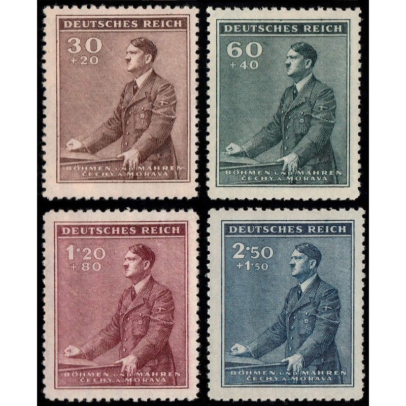 Bohemia and Moravia 1942 WWII Hitler Postage Stamps, Set of Four, Stamp No B9-B12