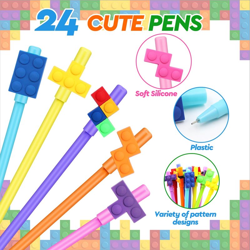 - 【Creative Building Block Fun】Dive into a world of creativity with our building block party set, featuring 24 block-patterned notebooks, 24 block-shaped pens, and 100 colorful stickers. Perfect for kids who love to build and explore!