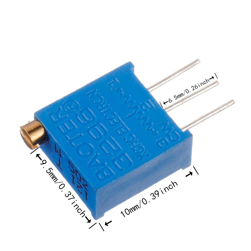 - Potentiometer Model:12 Type-100Ω (101), 1KΩ (102), 10KΩ (103), 100KΩ (104), 200Ω (201), 2KΩ (202), 20KΩ (203), 200KΩ (204), 500Ω (501), 5KΩ (502), 50KΩ (503), 500KΩ (504)