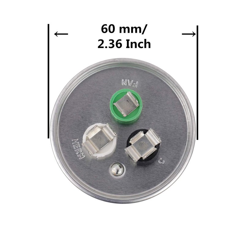 Ombines two capacitors into one unit. Three terminals on the top are labeled "Herm"/"H" for the compressor motor, "Fan"/"F" for the fan, and "C" for the common line.It will power a compressor motor and a fan motor