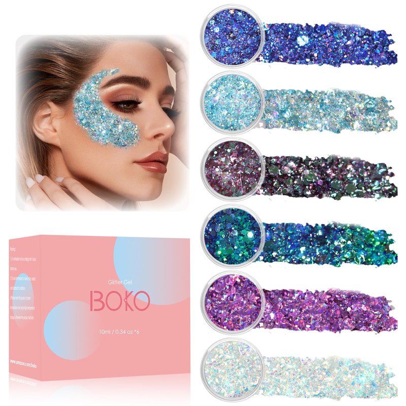 - Safe Cosmetic Glitter Gel: Embrace the captivating sparkle of our body glitter lotion, a formula meticulously crafted with gentle, cruelty-free and irritation-free ingredients. Our rave glitter gel boasts quick-drying and long-lasting sparkle properties, will keep you sparkling all the day. Removing the hair glitter is effortless; simply rinse it away with warm water or cleanser. With BOKO face glitter gel, you can confidently show your inner sparkle in a safe and stylish manner.