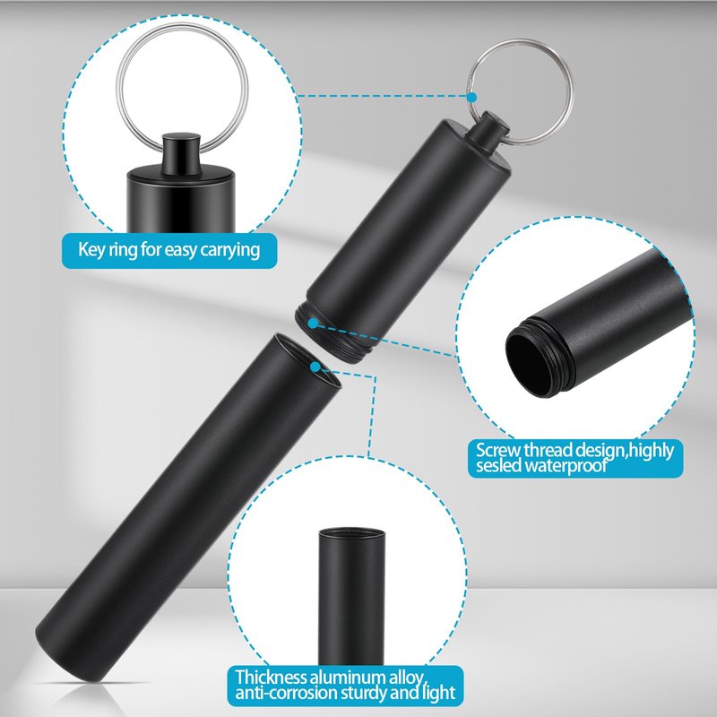 - Easy to Carry: the metal storage tube container is about 4.72 inches in height, 0.55 inch in diameter, designed in a portable pocket style, in the shape of a cylinder with a small key ring that will not take up your space, and can be hung in keychains, bags, and wallets or wherever you want to put them at any time, which is cute and convenient