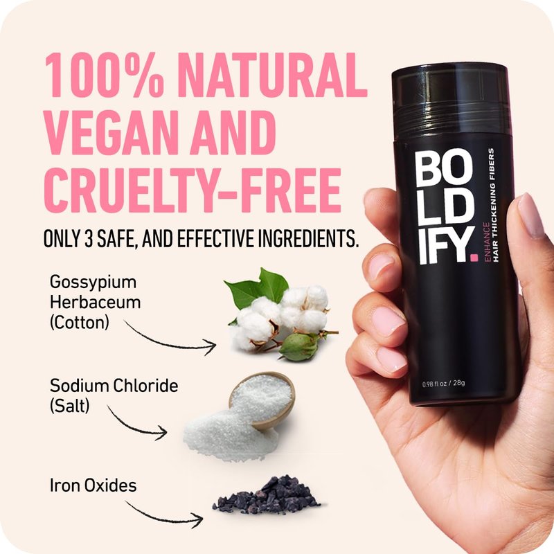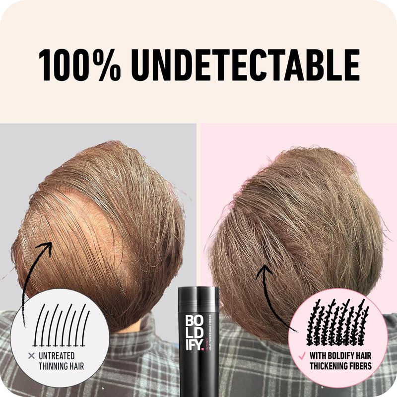 - Clump-proof fibers for a real hair effect & undetectable finish: Boldify Hair Thickening Fibers are the premium bald spot cover up for women and bald spot cover up for men that instantly disguise thinning and patchiness across the temples, part, crown, and sides. Our advanced hair powder fibers boast follicle-mimicking molecules that allow seamless blending and a natural, real-hair finish. Better than black hair spray color temporary and hair shading sponge pen waterproof options in every way!