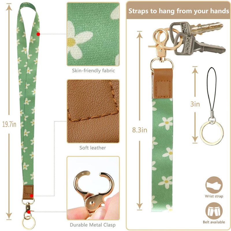 - 【Lanyard combination】:Neck lanyard for use around the neck, wrist strap lanyard for easy carrying on the wrist, with cell phone lanyard and metal ring for hanging card holders, wallets, badge holders, keys, cell phones, decorative items.