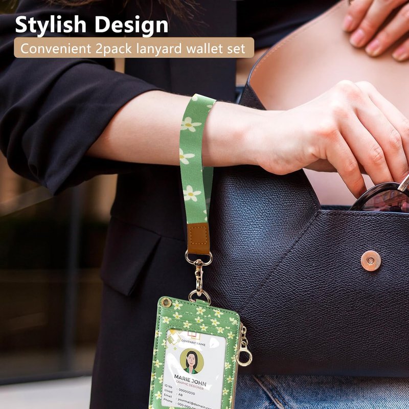 Perfect for women's wallet lanyards with a uniform style. The long lanyard can be used as an ID lanyard, wallet lanyard, badge lanyard, mobile phone lanyard; the short lanyard can be used as a mobile phone lanyard or lanyard for easy carrying. Complete with lobster clasp and metal ring. Five card slots on the front and back of the wallet with clear window for inserting ID cards, ID cards, business cards and credit cards; Side zipper pockets for cash, change, bills, etc. The fabric is a combination of high-quality leather + hypoallergenic fabric + metal. Long lanyard size 50cm, short lanyard 18cm, card holder size 12x8cm. Very beautiful, ideal as a gift for a friend.