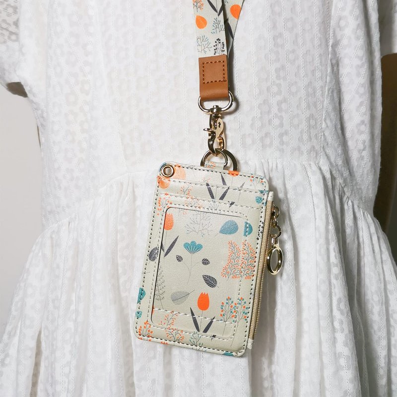 bolimoss Wallet Lanyard for id Badges,Lanyard Wallet for Women,Fashion Badge Holder with Zipper (Light Yellow)