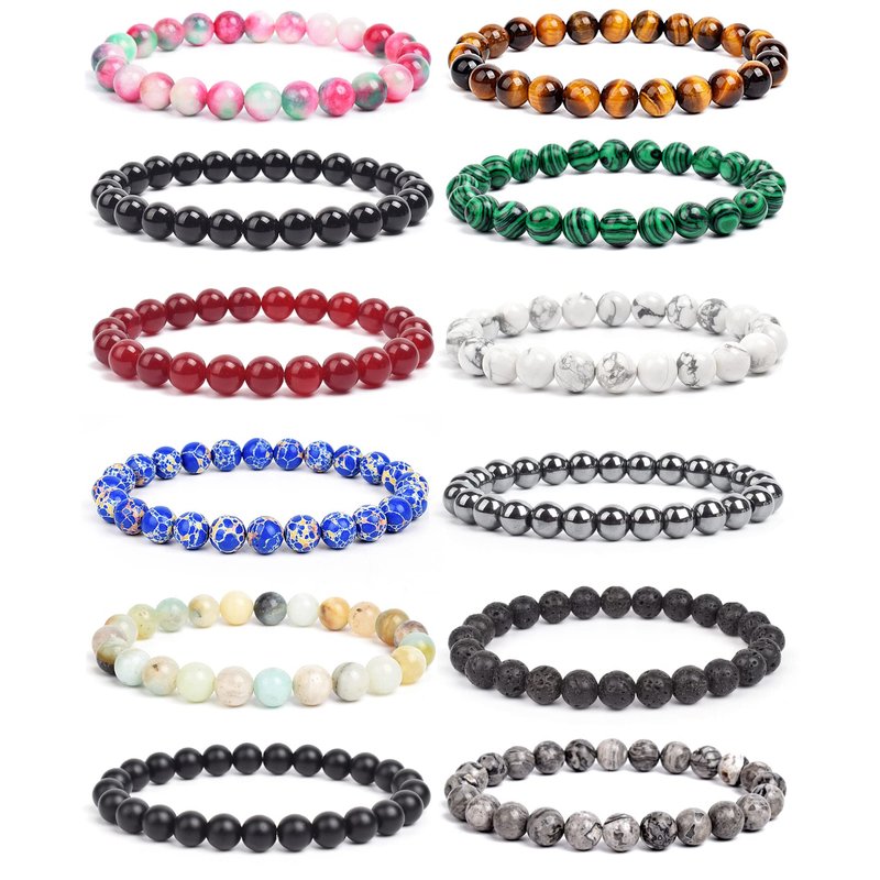 - 【Package Content 】You will get 12pcs 8mm Semi-precious natural stone beaded bracelets.Many more colors to choose,Simple and comfort design.The natural gemstones define the unique beauty of each piece,so every piece is unique.These stone beaded bracelets fit for women and men,will go well with your any outfits.