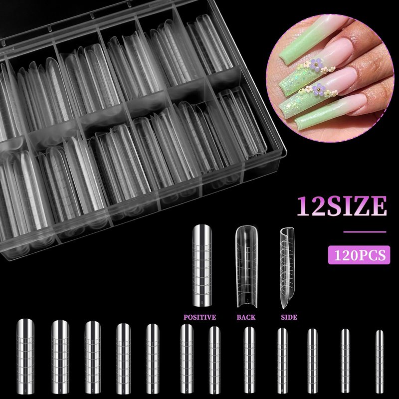 BOMOQING Nail Dual Forms for Poly Nail Gel 120 PCS 12 Sizes Square Tips for Full Cover Reusable Nail Molds Poly Nail Gel x Nail Kit,2 Nail Forms and Nail Sticker Silicone All in One Kit Nail Art Salon
