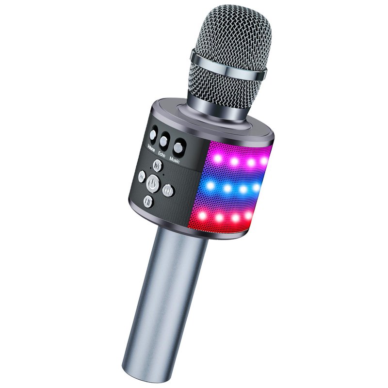 BONAOK Bluetooth Wireless Karaoke Microphone with LED Lights,4-in-1 Portable Handheld Mic with Speaker Karaoke Player for Singing Home Party Birthday Gift for Kids Adults Girls Q78(Space Gray)