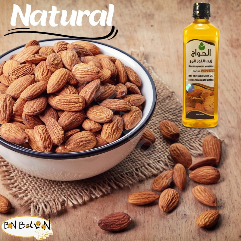 bonballoon Pure Bitter Almond Oil Virgin Cold Pressed Natural Face Nails Hair Care Skincare Facial Body Egyptian Arab Arabic Herbals Herb Herbs No Additives Kosher Halal (17.64 oz / 500 ml)