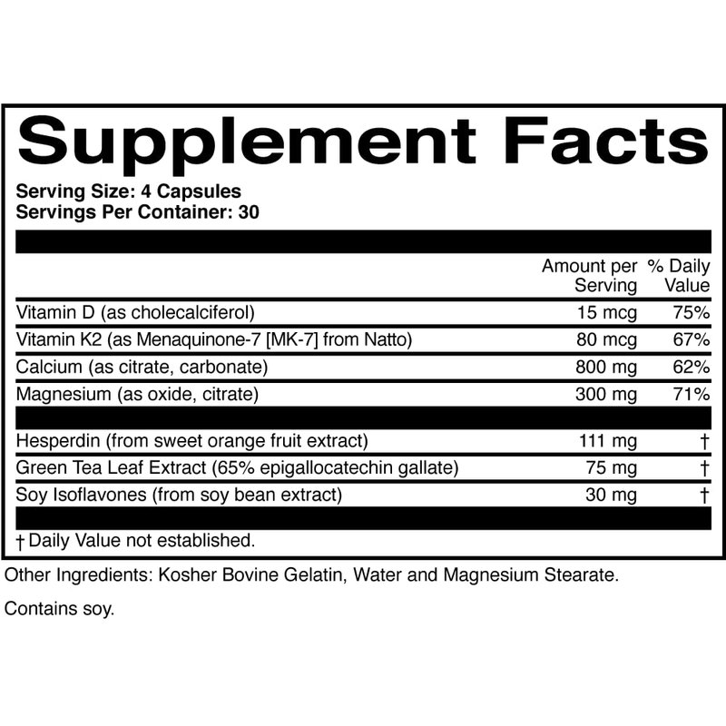 BoneProtect - Advanced Calcium Supplement for Bone Health - 800 Mg. Calcium, Vitamin D, Vitamin K, Soy Isoflavones, Hesperidin, Green Tea Extract - 120 Capsules