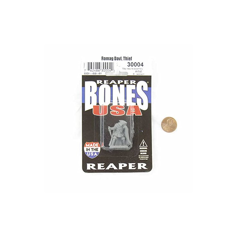 RPR30004 Romag Davl Thief Miniature Figure 25mm Heroic Scale Reaper Bones USA Reaper Miniatures Bones USA are thermoplastic injected miniatures using state-of-the-art technology to achieve amazing results. - High Detail - Reaper Bones USA holds more detail and is equal to resin or metal- Includes 1 Miniatures - 25mm Heroic Scale Fantasy Miniatures- Integral Bases- Unpainted plastic models- Miniatures are supplied unpainted and assembly may be required.- Bones USA Miniature Figures are made in the USA CAUTION: Not for Children under the age of 14 Years.