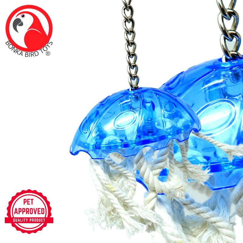 Bonka Bird Toys 0042 Small Jellyfish, Bulletproof Pull Tug Cage Toy, (10" x4") Conure, Pionus, Quaker, and Similar Sized Birds