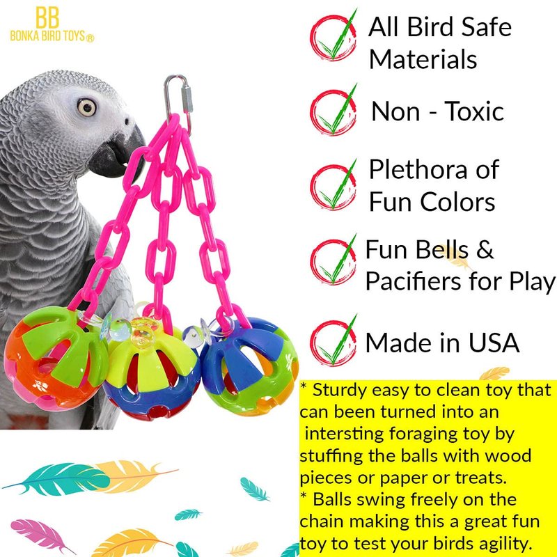 Bonka Bird Toys 1273 Tri-Chain Ball 10" High by 6" Wide Medium Parrot Plastic Cage Toy, African Grey, Pionus, Ringneck, and Similar Sized Birds