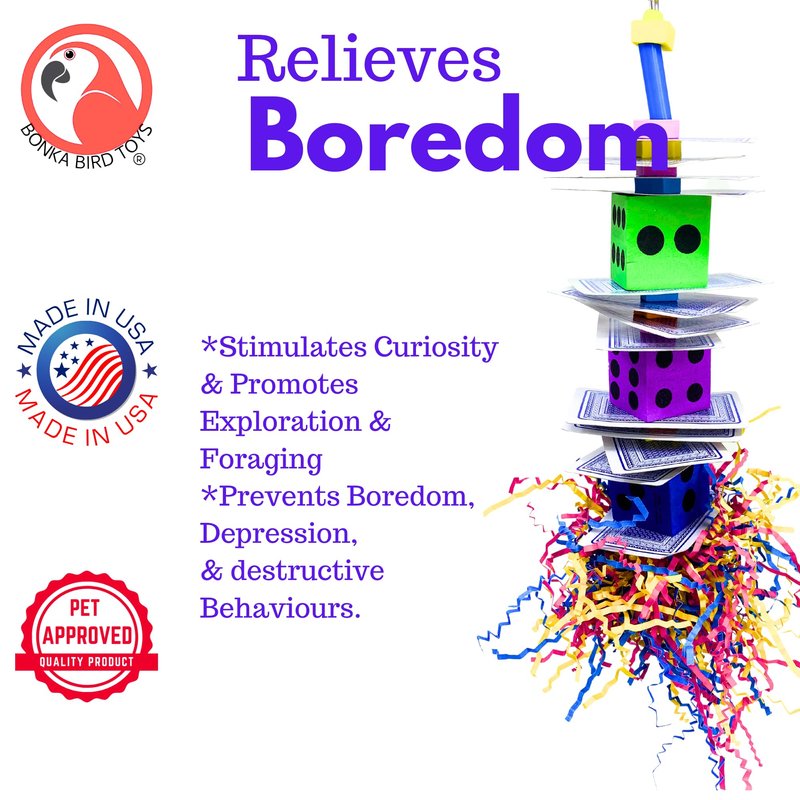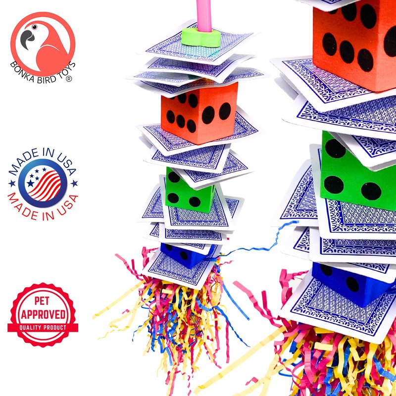 Bonka Bird Toys 1474 Poker Dice Chew Forage Shred Medium Parrot Cage Toy, Conure, Quaker, Caique, and Similar Breed Sizes