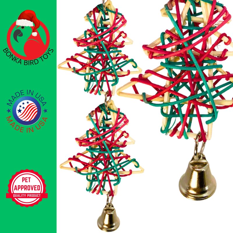 Bonka Bird Toys 1542 Duo Christmas Tree Festive Vine Chew Shred Parrot Cage Toy, Conure, Parakeet, Caique, and Similar Breed Sizes