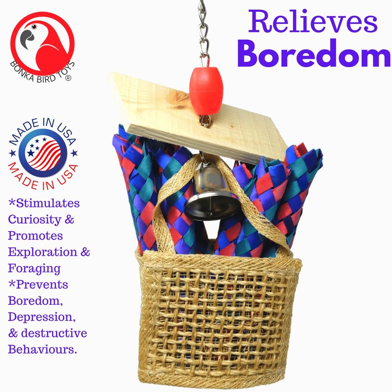 Bonka Bird Toys 1653 Chewy Bag 8" High by 4" Wide Medium Parrot Shredder Forage Cage Toy, Conure, Pionus, Lories, and Similar