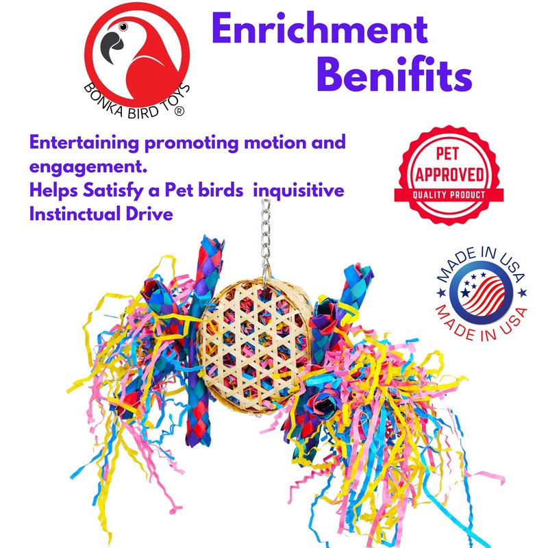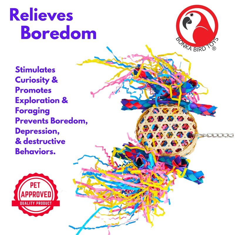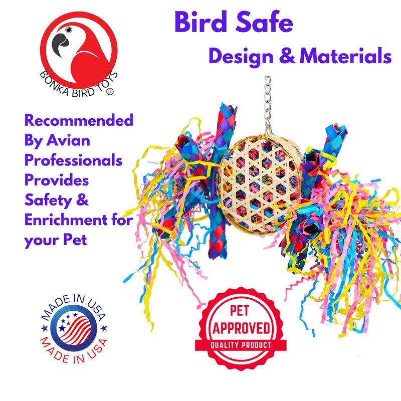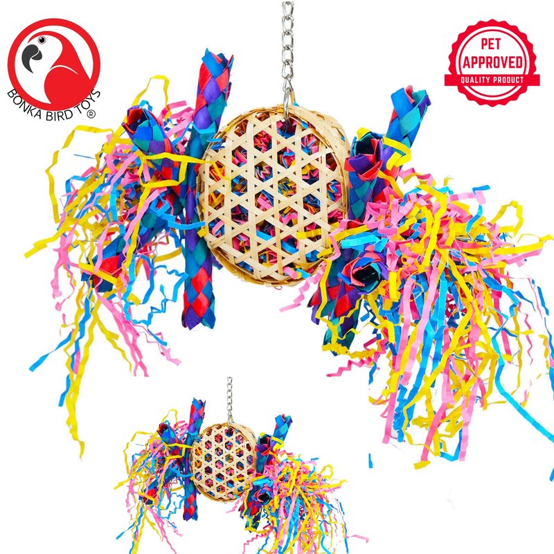 - The 1721 Round Basket from Bonka Bird Toys is a colorful and shreddable foraging delight.