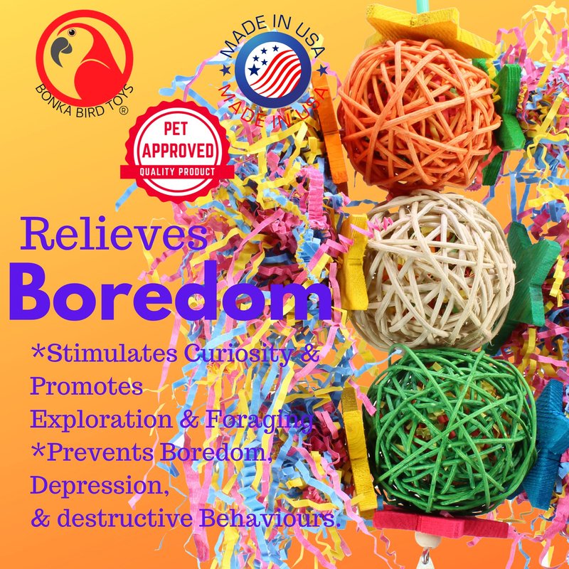 - The 1854 Tri Foraging Star from Bonka Bird Toys is a large and shreddable colorful bird toy.