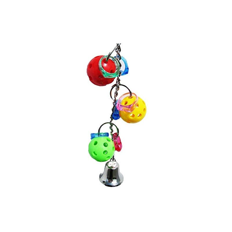 1950 Jingle Balls, an attractive, clean, and colorful toy that your favorite small feathered friend will love to climb about. Three brightly colored small balls are adorned with colored acrylic rings and threaded to a sturdy link hanging chain, finished out at the bottom with a small bell. From climbing, pulling, and chewing they will enjoy all the activities that this toy offers. Measures approximately 9 inches high by 2 inches wide, comes complete with a quick link for easy cage placement.