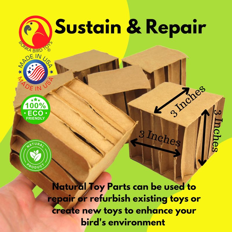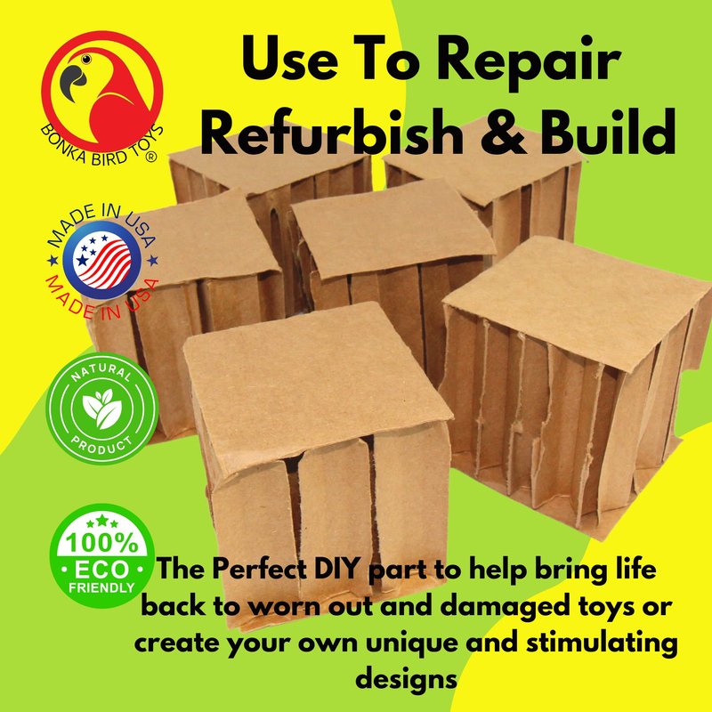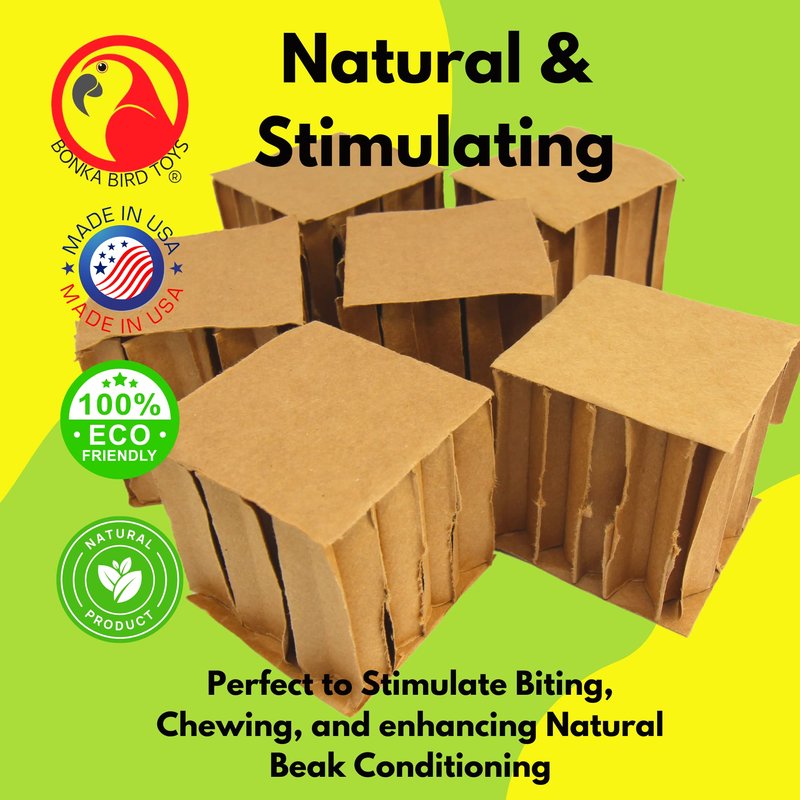 Bonka Bird Toys 2296 Pk6 3" Square Cardboard Cubes Parrot Chew Foot Talon Cage Toy, Conure, Amazon, African Grey, and Similar