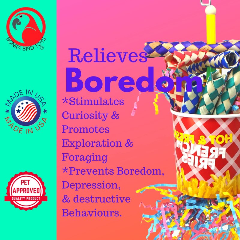 - The 2306 French Fries from Bonka Bird Toys is an awesome chew, forage, and shred fest for your small to medium-sized, cherished companions, a great toy to hide treats for birds.