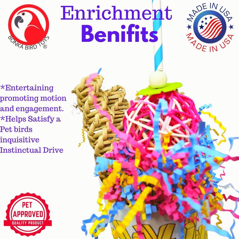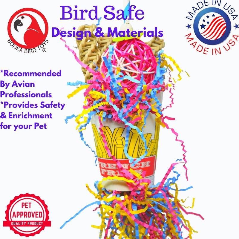 - The 2334 Order Of Fries from Bonka Bird Toys is an excellent chew, forage, and shred fest for your small to medium-sized, cherished companions.