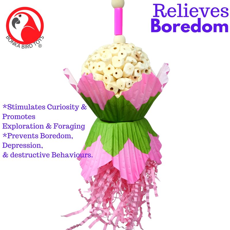 Discover the enchanting world of avian play with the Bonka Bird Toys 2606 Sola Petal Toy. This beautifully crafted toy is an ideal addition to any bird's habitat, offering both aesthetic charm and functional benefits. At its heart is a captivating Natural Sola Ball, surrounded by an array of bright paper petals, creating a visually stimulating experience for your feathered friend. With dimensions of approximately 10 inches in height and 5 inches in width, this toy is perfectly sized for small to medium birds, including Parakeets, Cockatiels, Conures, and more. The 2606 Sola Petal Toy is feather-light, weighing about 1 ounce, allowing birds of various sizes to engage with it effortlessly. This dynamic toy not only adds a splash of color to your bird's environment but also promotes physical activity and mental alertness. Constructed with natural materials, it offers a safe and satisfying chewing experience, crucial for your bird's well-being. By introducing this toy to your aviary, you're providing more than just a plaything; you're enriching your bird's life with an opportunity to explore and enjoy the natural joys of foraging and play.